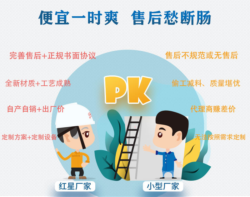 小廠家:建材市場淘一些便宜的材質(zhì)或零件,生產(chǎn)工藝不夠規(guī)范,或二手舊設(shè)備組裝,經(jīng)不起時(shí)間的考驗(yàn)。